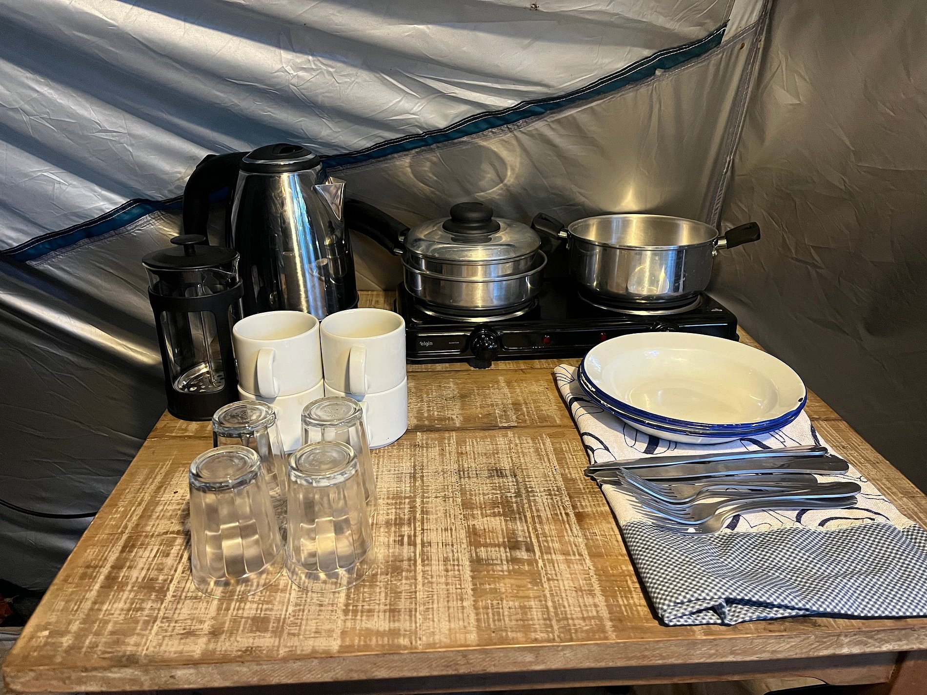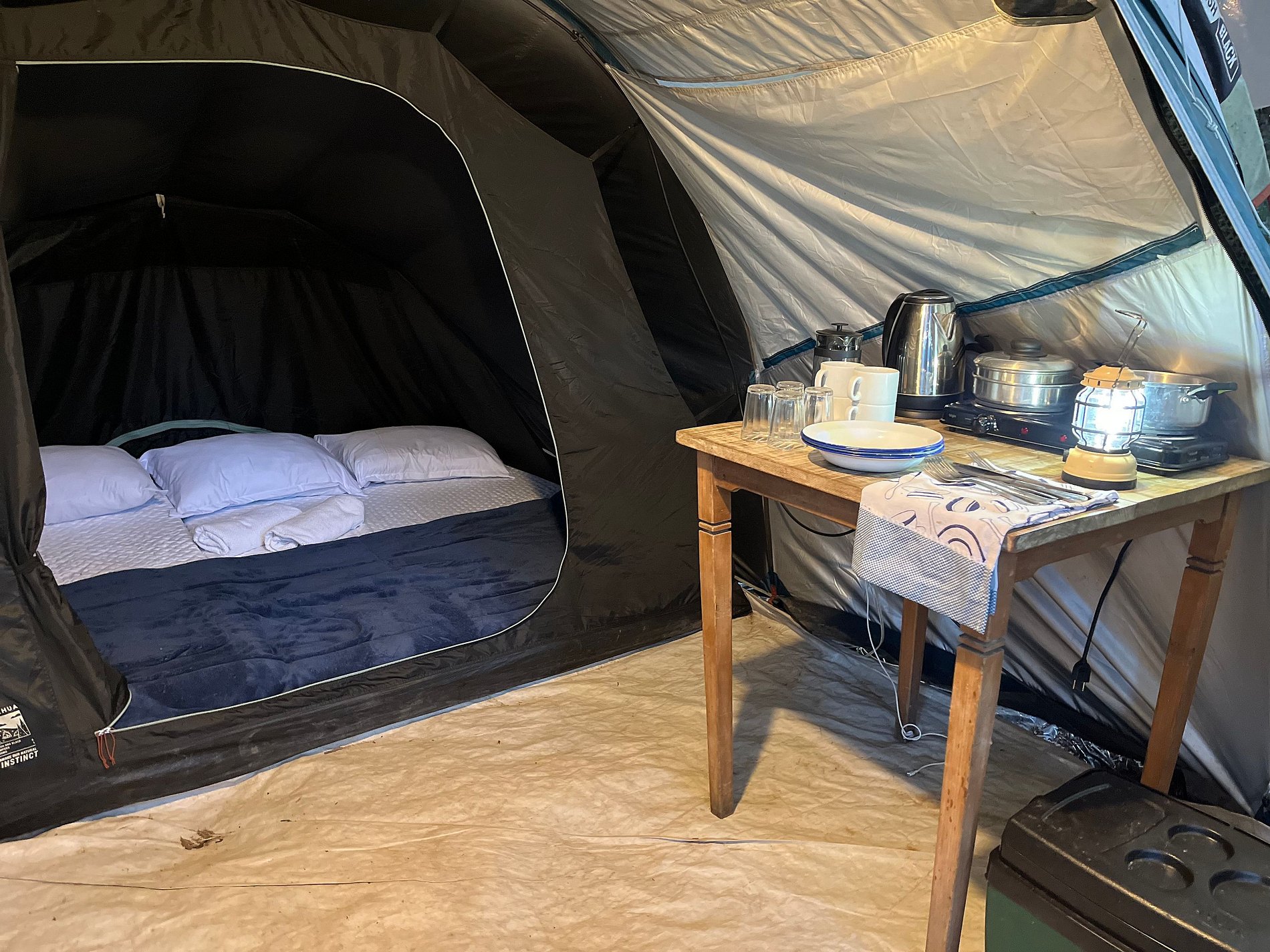 Viva a experiência do glamping às margens da represa dos Alagados. A barraca já vem montada, com colchão, roupa de cama, toalhas e itens de cozinha como fogareiro elétrico, panelas, pratos, copos e talheres. O pacote inclui ainda café da manhã e 2 horas de caiaque para aproveitar a paisagem de um jeito especial. Conforto na medida certa para quem quer estar perto da natureza sem abrir mão da praticidade.